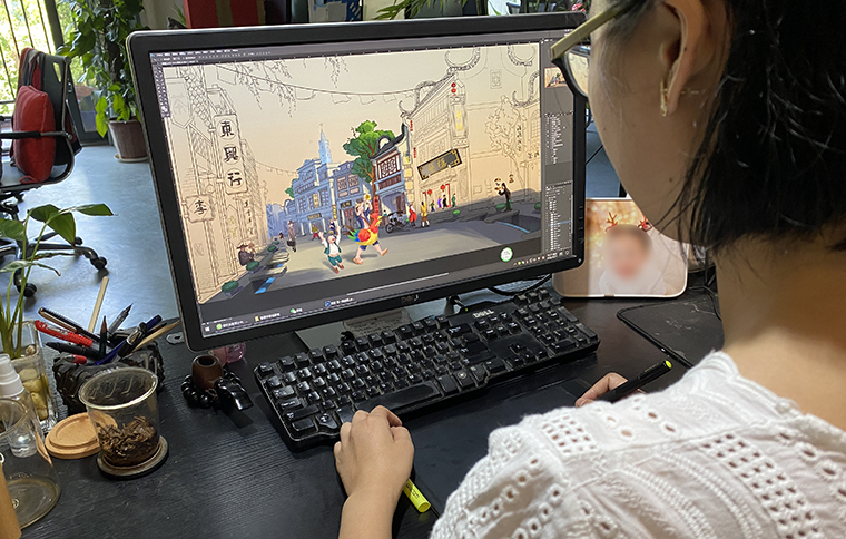 我們將故事中蘩樓在民國時(shí)期西關(guān)大街的場(chǎng)景、西關(guān)人提籠遛鳥的生活片段、在茶樓享受一盅兩件的飲茶習(xí)俗以手繪畫出來,還原品牌歷史。這是