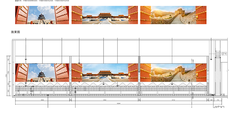 空間墻面中,我們使用了大量的軟膜燈箱,將北京故宮的高精度畫面進行展示,讓顧客透過一幅幅畫面仿佛置身故宮中,進一步強化了對京味張的品牌認知。