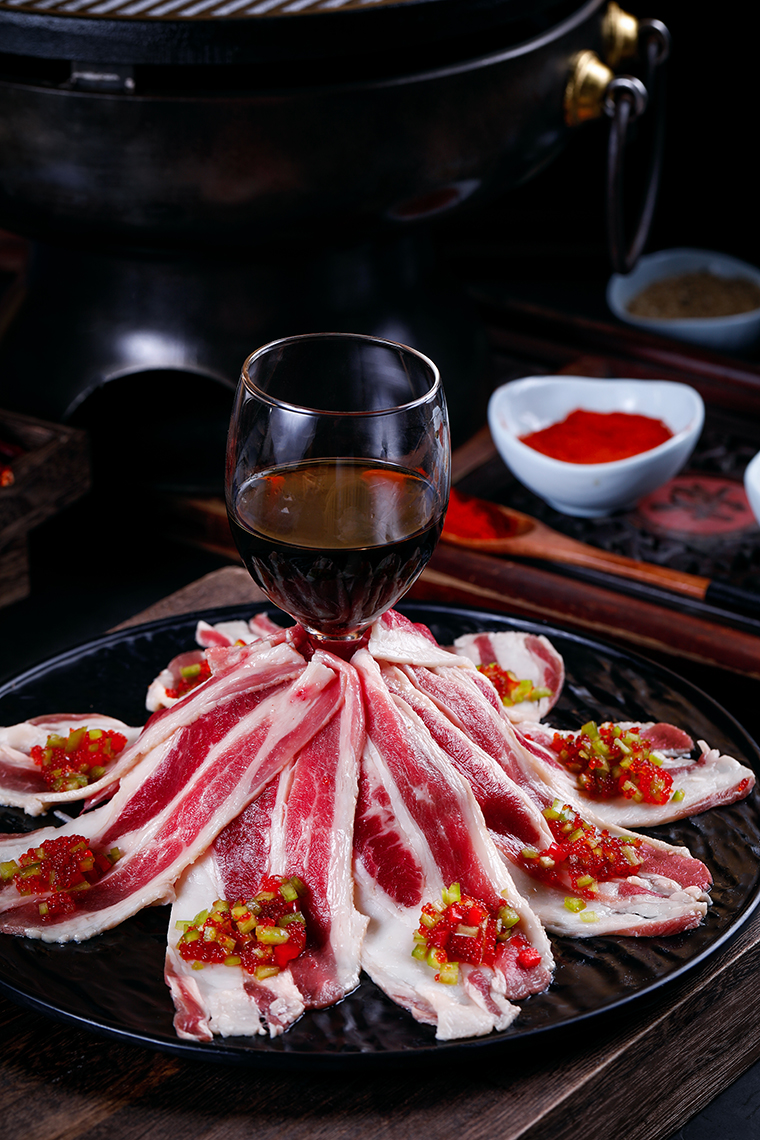 正宗地道的現拌烤肉,堅持選用當天的宰殺的新鮮牛羊肉,現場腌制,現點現腌。現拌烤肉來自于傳統的老北京炙子烤肉,在此基礎上又進行了創新改進。其最大特點是牛、羊、豬肉、小海鮮甚至素菜均需提前加辣椒面、孜然粒、香料粉、香料油、山胡椒油、大蒜、洋蔥等料拌勻后上桌,經過烤制,調料的滋味隨著溫度升高逐漸滲入原料中,烤好的食材無須蘸食料碟,滋味便足夠濃郁。同時最大程度保留了食材的新鮮,比傳統韓式烤肉更加鮮美,好吃!