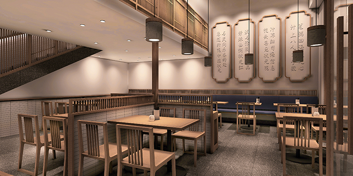 古代的懷舊是用餐空間設(shè)計中經(jīng)常使用的主題。它收集并組織了豐富的歷史和文化特色,再現(xiàn)了歷史魅力,并賦予了食物空間以強(qiáng)大的生命力和吸引力。爬上樓梯后,覆蓋著藍(lán)灰色石板的地面是蜿蜒的走廊。環(huán)境營造出一種平靜和清晰的感覺。
