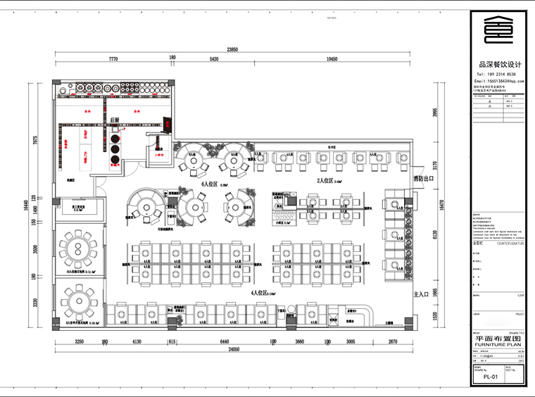 總面積330平,餐區(qū)面積265平,后廚面積65平