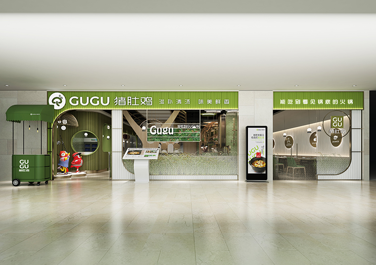 廣式火鍋因其健康養(yǎng)生、清淡滋補(bǔ)營(yíng)養(yǎng)好而深受各地消費(fèi)者的喜愛(ài)和追捧。除了傳統(tǒng)的潮汕鮮切牛肉火鍋,椰子雞、豬肚雞也是目前廣式火鍋中非常熱門的餐飲品類。深圳椰子雞火鍋連鎖品牌——江南春天椰子雞餐廳就非??春秘i肚雞這一品類,該連鎖餐廳旗下豬肚雞火鍋品牌——咕咕豬肚雞,將傳統(tǒng)的濃湯豬肚雞升級(jí)為清湯豬肚雞,湯底更加清淳,味道鮮香還甜美,相比傳統(tǒng)豬肚雞,養(yǎng)生滋補(bǔ)功效很明顯。咕咕豬肚雞餐廳在產(chǎn)品上還加入了粵菜經(jīng)典細(xì)分品類——啫啫煲,這也是粵菜中非常熱門的品類。與豬肚雞火鍋搭配,豐富了產(chǎn)品線,市場(chǎng)競(jìng)爭(zhēng)優(yōu)勢(shì)比較顯著。此次咕咕豬肚雞啫啫煲餐廳經(jīng)過(guò)認(rèn)真考察分析比對(duì)后委托品深餐飲設(shè)計(jì)負(fù)責(zé)咕咕豬肚雞啫啫煲大浪商業(yè)中心后浪新天地店的空間裝飾設(shè)計(jì)。
