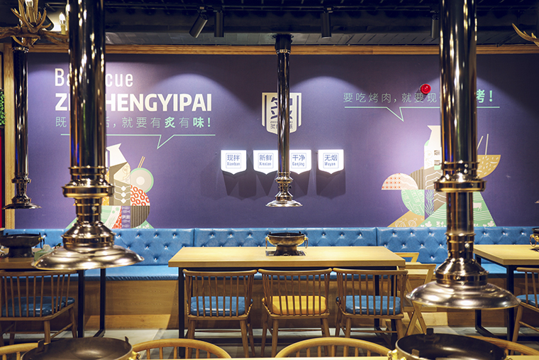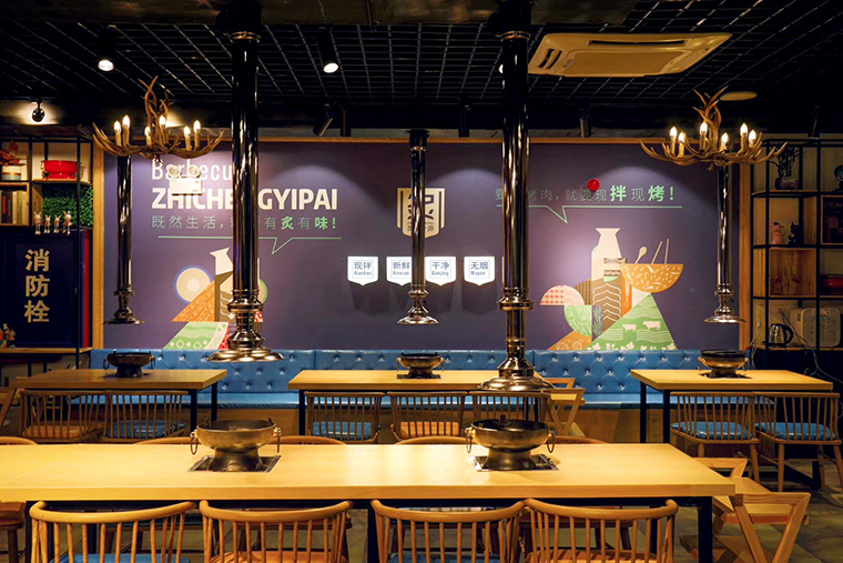 炙成一派作為海口首家現(xiàn)拌烤肉,具有明顯的市場先發(fā)優(yōu)勢,在空間中通過氛圍體驗,品牌訴求,在消費者心目中植入現(xiàn)拌烤肉就是炙成一派,將品牌等同于品類。通過空間的視覺體驗,燈光感受,食物的味道,家具軟裝的觸感體驗,讓顧客能放松心情,享受美食,有情懷,有情調(diào),有趣味。顧客置身其中,心靈宣泄,釋放壓力,最終產(chǎn)生品牌的粘性和較高的復(fù)購率。
