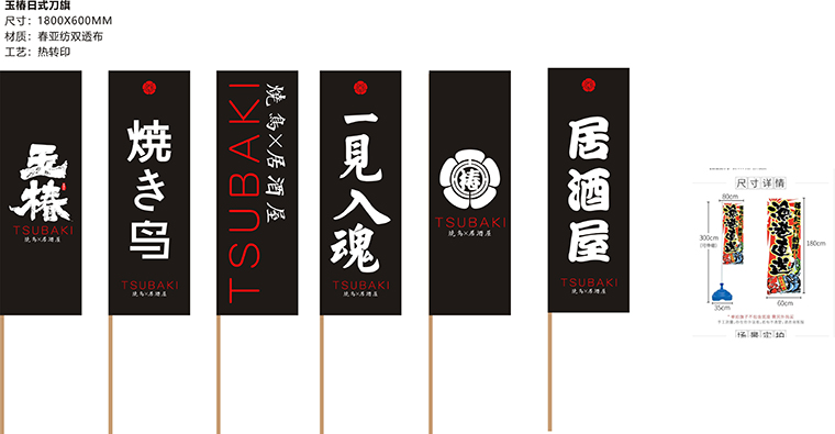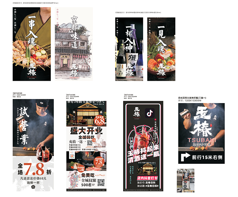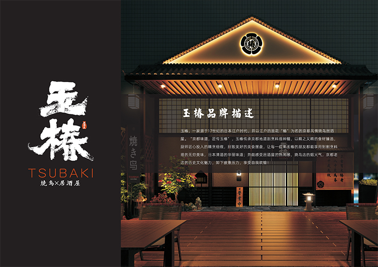 品牌記憶點:日本京都風格門頭設(shè)計+玉椿標識及家徽+燒鳥手繪畫面+四大主色調(diào)。