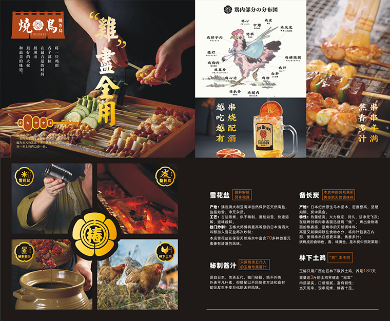 工作內(nèi)容:日本料理燒鳥居酒屋市場定位策劃,燒鳥居酒屋品牌命名,爐端燒、割烹料理、燒鳥日本料理店VI形象設(shè)計,燒鳥居酒屋空間裝飾裝修設(shè)計,軟裝陳列設(shè)計,燒鳥居酒屋品牌故事,燒鳥居酒屋全案策劃設(shè)計。